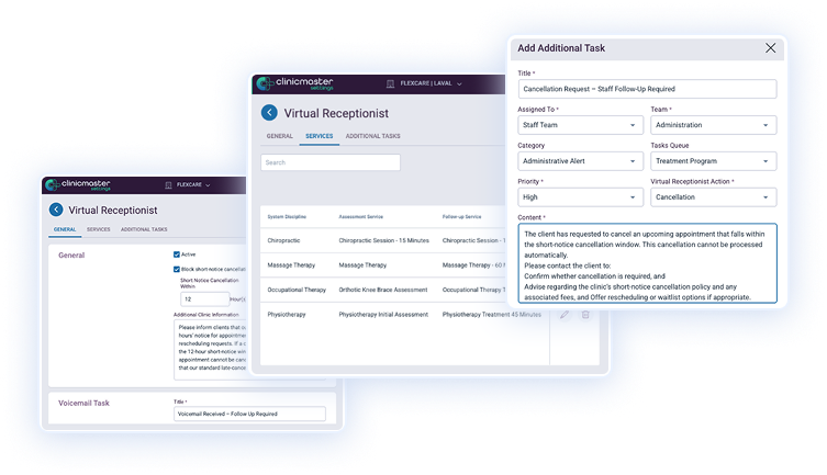 All patient interactions are connected directly to Clinicmaster, ensuring seamless updates to schedules, records, and billing, with no duplicate entries.