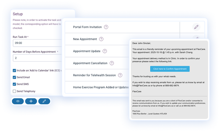 Send customizable SMS or email reminders at intervals you choose. Patients confirm or reschedule with a single click, keeping your calendar full.