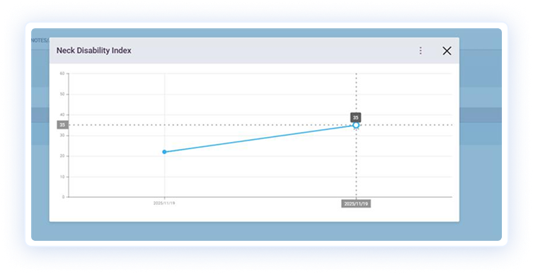 Track vitals, pain levels, and patient feedback over time. Visual dashboards and graphs provide insights into progress, helping refine treatment plans.
