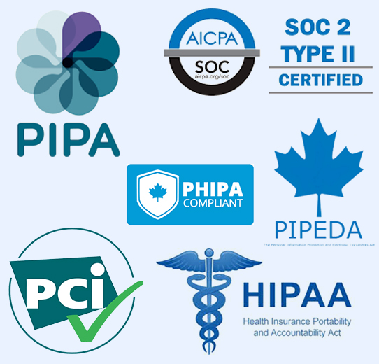 Built-in HIPAA, PIPEDA, and SOC 2 compliance