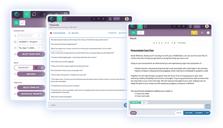 Capturez automatiquement des notes structurées pendant les séances pour les utiliser immédiatement dans les dossiers des patients.