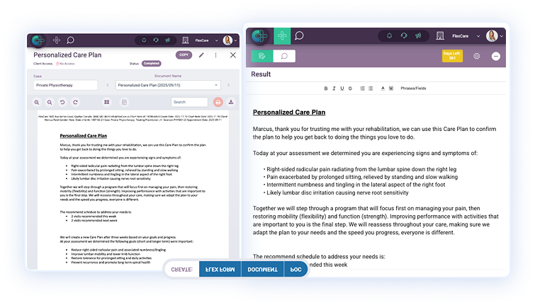 Les notes, les évaluations et les plans de traitement sont enregistrés directement dans le DME de Clinicmaster, ce qui élimine les doubles saisies et permet de conserver tous les dossiers des patients au même endroit.